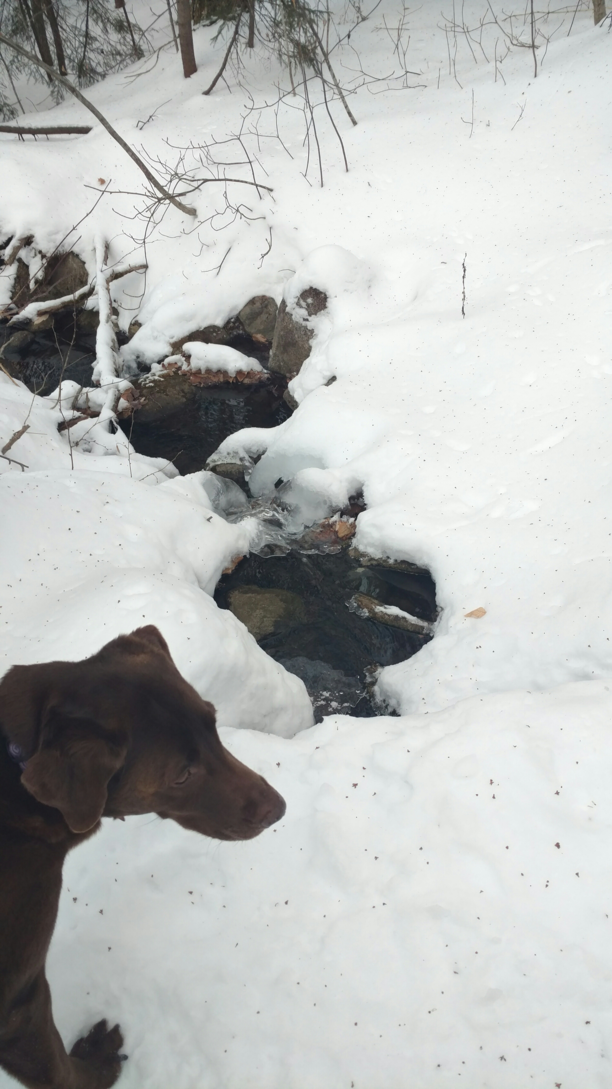 I went up Stinson again today only this time there was snow on the trail. I love walking up mountains in New Hampshire winter; I always feel like I’m walking through a Jan Brett book. Specifically Trouble with Trolls in which a blonde girl walks up a mountain with a dog through snow covered trees dealing with clever little trolls all the way.