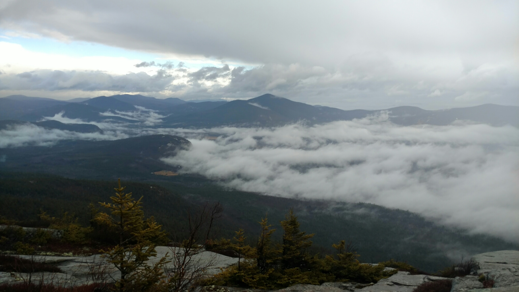 I texted my friend Emma, lady-athelete-extraordinaire, asking what her favorite hikes in NH were, and Moat got the vote! Being a bit unnecessarily nervous about doing bigger hikes on my own, I found my good old friend, Eric, and we went out together despite the significant cloud layer and threats of rain (it was just supposed to be the morning!)