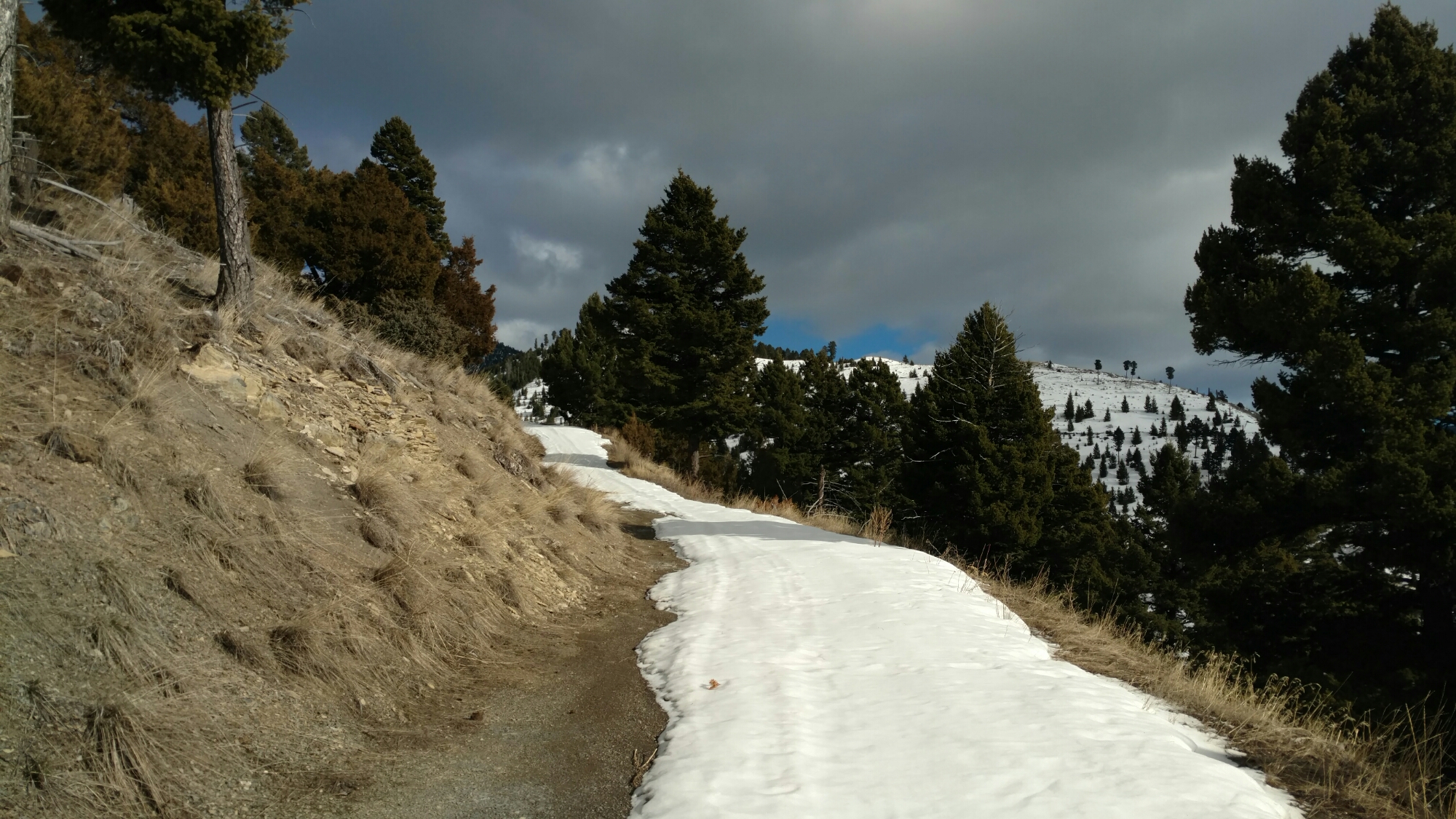 The snow soon became very soft and riding became very squirrely (real word), so we ditched the bikes in favor of walking, much to my relief. As I’ve said before, I’M REALLY GOOD AT WALKING. We wandered around the many intersecting roads, just feeling our way to what we thought would lead to…something I didn’t know at the time. About two hours in, after a good amount of slipping and a glorious amount of sunlight we finally reached….the TRAILHEAD.