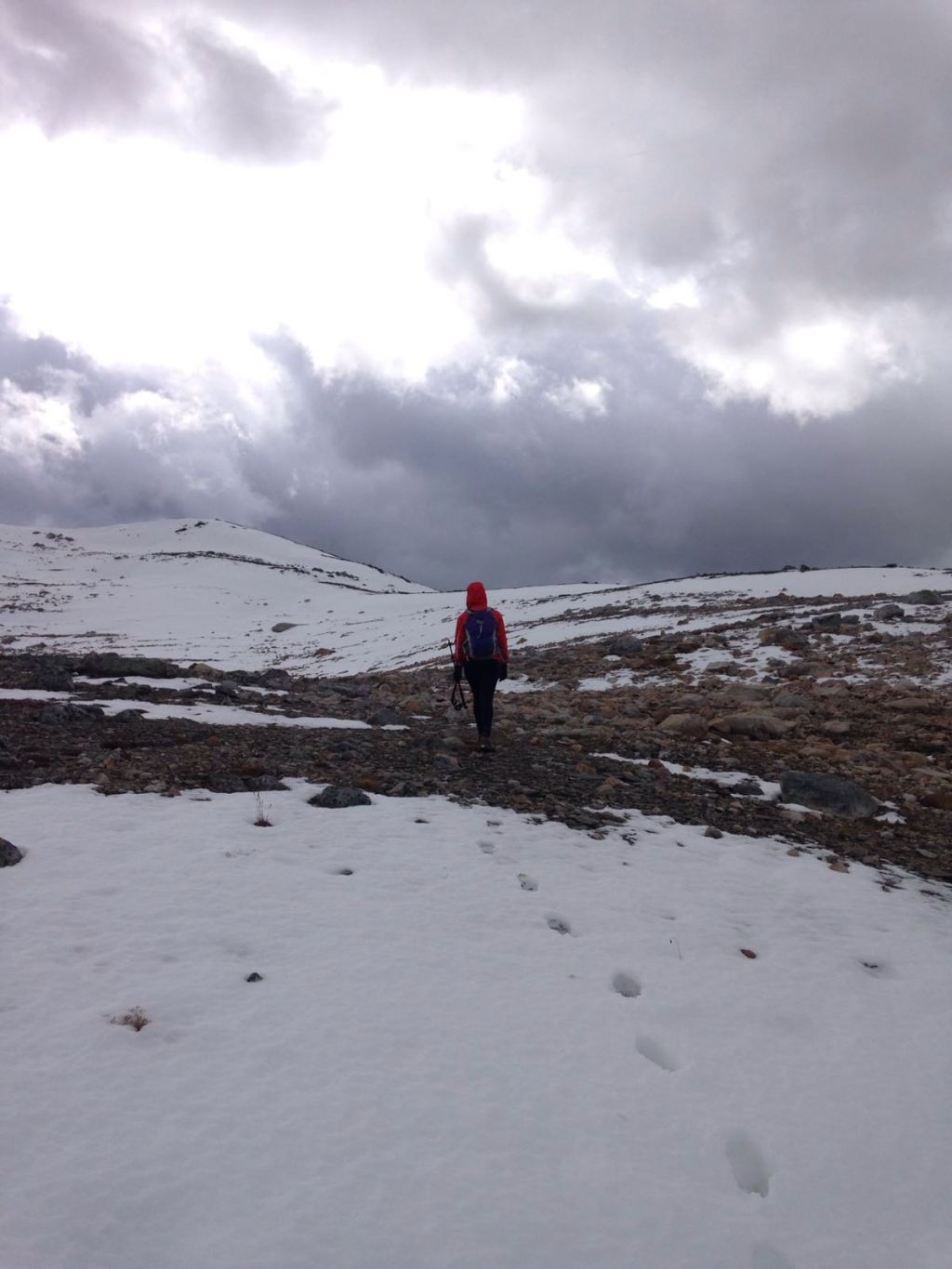 I didn’t feel well in the morning, but decided to head out with the guys anyway. We decided to explore the Edith Cavell Meadows, just up the street from the hostel. We ended up doing baby mountaineering, going completely off track into a scree field below the towering peak of Edith Cavell (so named in honor of the British Nurse). We then headed straight up the wall of the drainage to reach the upper meadows, continuing on to an unnamed auxiliary peak next to Edith Cavell. The peak may have been small and unnamed, but it nonetheless felt like an extreme accomplishment. There was snow, there was free-form, over-land travel, wet feet, a total downpour, and lots of fun.