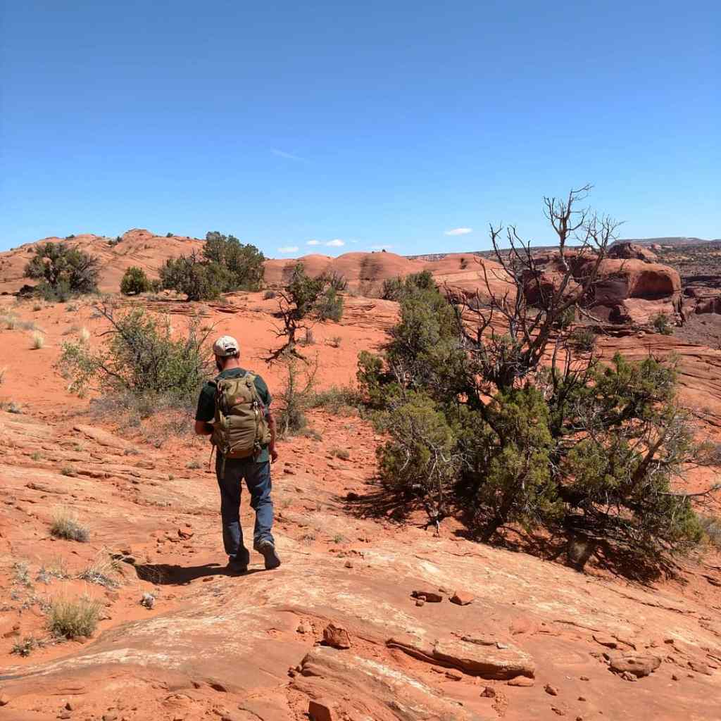 Now, hiking in the desert is unlike most of the hiking I’ve done and am familiar with. Especially in the National Monument there are very few established trails. There are several guidebooks that have written descriptions of how to navigate across various terrains to and through various canyons, etc. but a lot of it is “navigate on your own” or “hope that enough people have done the route and put up cairns to mark the way.” It’s a really important place (unless you’re very, very confident in your landscape navigation) to have a topo map and some directions.